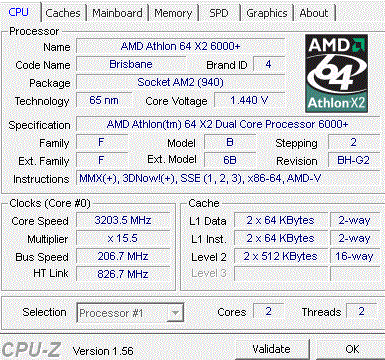 Результат разгона AMD Athlon 64 X2 (Brisbane)