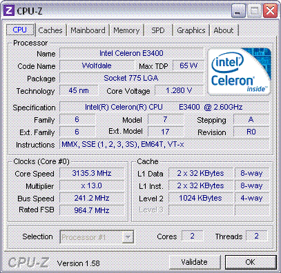 Результат разгона Intel Celeron (Conroe-512)