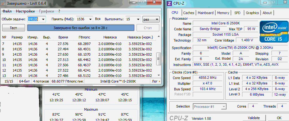 Результат разгона Intel Core i3/i5/i7 (Sandy Bridge; LGA1155)