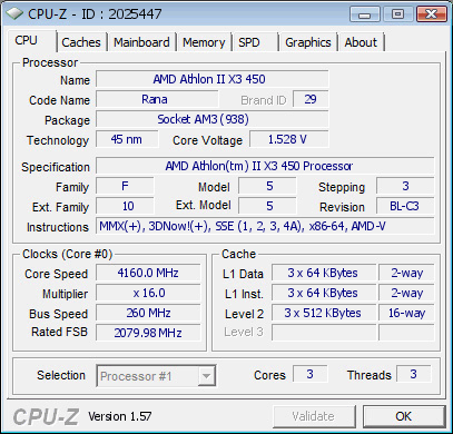 | Процессор (ядро) | AMD Athlon II X3 (Rana) |