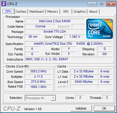 Результат разгона Intel Core 2 Duo (Conroe-2M)