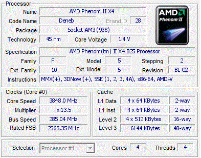 | Процессор (ядро) | AMD Phenom II X4 (Deneb) |