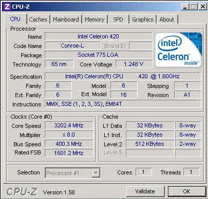 | Процессор (ядро) | Intel Celeron (Conroe-L) |