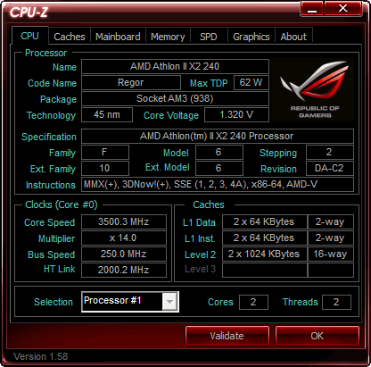 Результат разгона AMD Athlon II X2 (Regor)