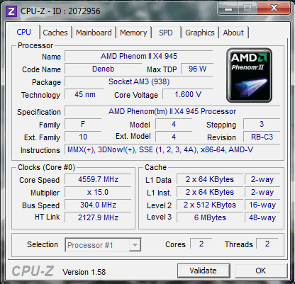 | Маркировка | phenom II x4 945 |