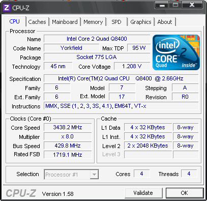 Результат разгона Intel Core 2 Quad (Yorkfield)