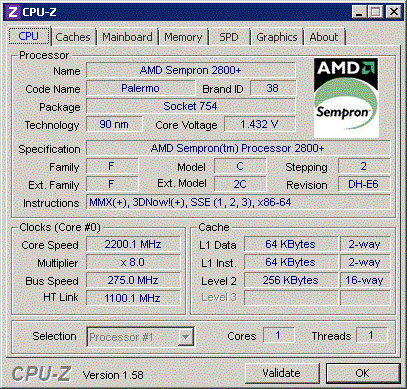 Результат разгона AMD Sempron (Palermo)