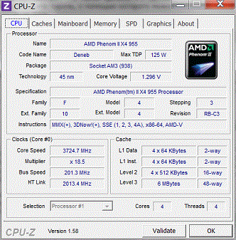 Результат разгона AMD Phenom II X4 (Deneb)