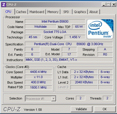 Результат разгона Intel Pentium Dual-Core (Wolfdale-2M)