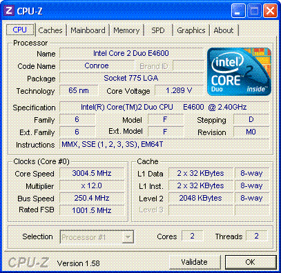Результат разгона Intel Core 2 Duo (Conroe)