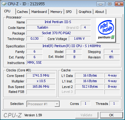 | Процессор (ядро) | Intel Pentium III-S (Tualatin-512) |