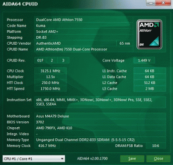 Результат разгона AMD Athlon X2 (Kuma)