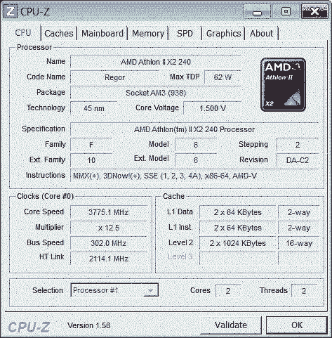 | Процессор (ядро) | AMD Athlon II X2 (Regor) |
