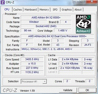 | Процессор (ядро) | AMD Athlon 64 X2 (Windsor) |