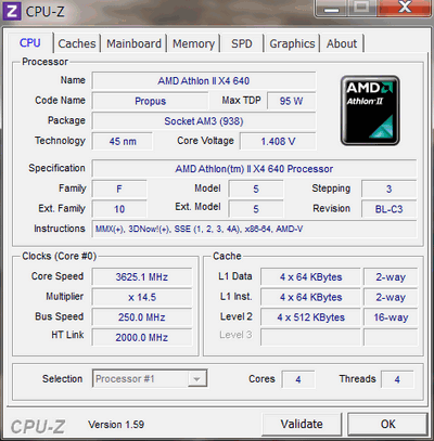 | Процессор (ядро) | AMD Athlon II X4 (Propus) |