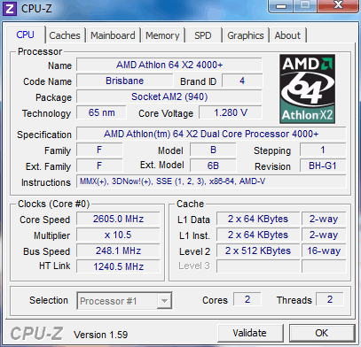 | Процессор (ядро) | AMD Athlon 64 X2 (Brisbane) |