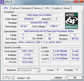 Результат разгона AMD Athlon 64 X2 (Brisbane)