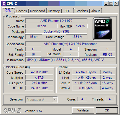 Результат разгона AMD Phenom II X4 (Deneb)