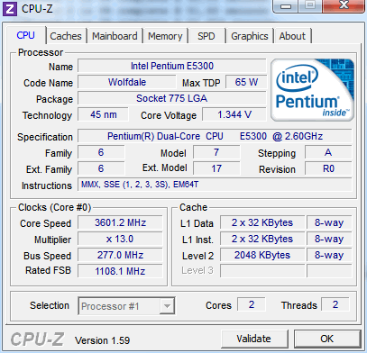 | Процессор (ядро) | Intel Pentium Dual-Core (Wolfdale-2M) |