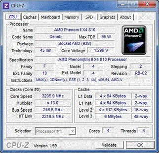 | Процессор (ядро) | AMD Phenom II X4 (Deneb) |