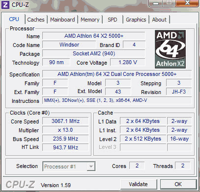 Результат разгона AMD Athlon 64 X2 (Windsor)