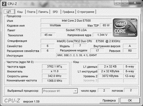 Результат разгона Intel Core 2 Duo (Wolfdale)