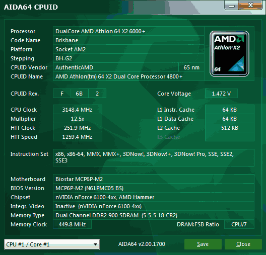 | Процессор (ядро) | AMD Athlon 64 X2 (Brisbane) |
