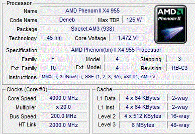 | Процессор (ядро) | AMD Phenom II X4 (Deneb) |