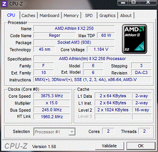 | Процессор (ядро) | AMD Athlon II X2 (Regor) |