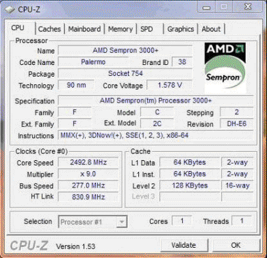 Результат разгона AMD Sempron (Palermo)