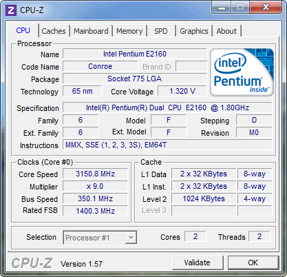 | Процессор (ядро) | Intel Pentium Dual-Core (Conroe-1M) |