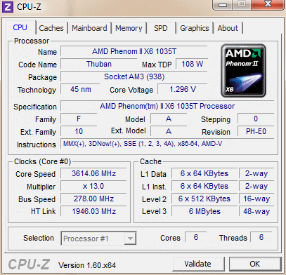 | Процессор (ядро) | AMD Phenom II X6 (Thuban) |