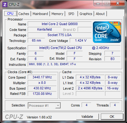 Результат разгона Intel Core 2 Quad (Kentsfield)
