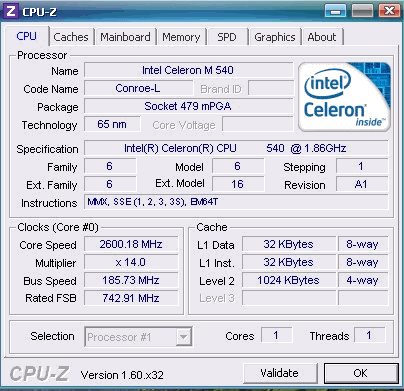 Результат разгона Intel Mobile