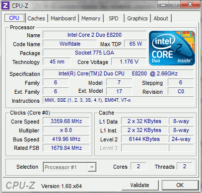 Результат разгона Intel Core 2 Duo (Wolfdale)