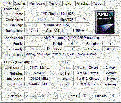 | Процессор (ядро) | AMD Phenom II X4 (Deneb) |