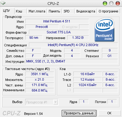 | Процессор (ядро) | Intel Pentium 4 (Prescott) |