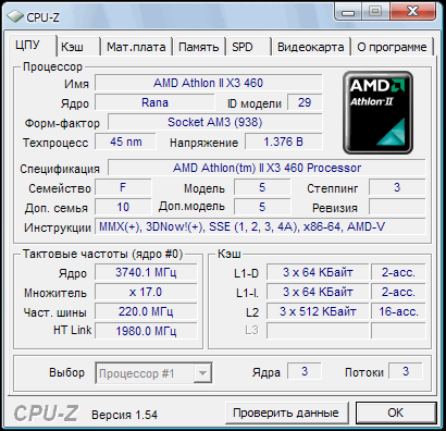 | Процессор (ядро) | AMD Athlon II X3 (Rana) |