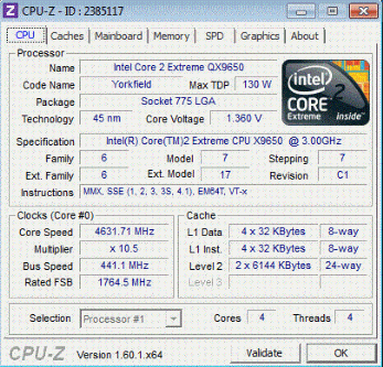 | Разгон, максимально стабильная частота (FSB x Ratio) | 4630 (441 x 10.5) |