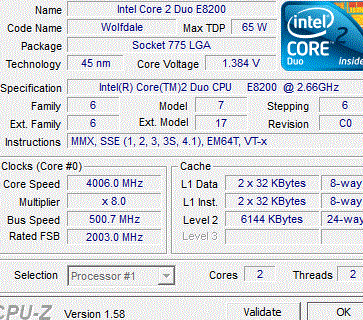 Результат разгона Intel Core 2 Duo (Wolfdale)