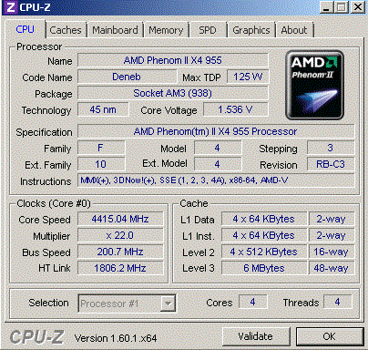 | Процессор (ядро) | AMD Phenom II X4 (Deneb) |
