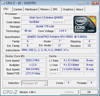 | Разгон, максимально стабильная частота (FSB x Ratio) | 5328 (444 x 12.0) |