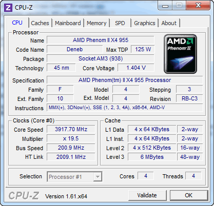 | Процессор (ядро) | AMD Phenom II X4 (Deneb) |