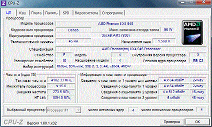 | Процессор (ядро) | AMD Phenom II X4 (Deneb) |