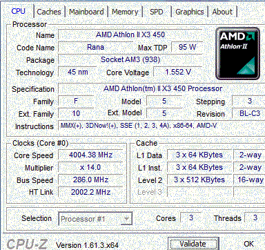 | Процессор (ядро) | AMD Athlon II X3 (Rana) |