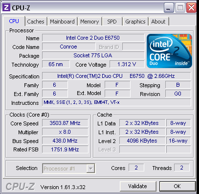 Результат разгона Intel Core 2 Duo (Conroe)