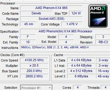 | Процессор (ядро) | AMD Phenom II X4 (Deneb) |