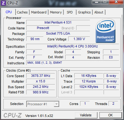 | Процессор (ядро) | Intel Pentium 4 (Prescott) |
