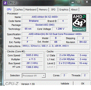 Результат разгона AMD Athlon 64 X2 (Brisbane)