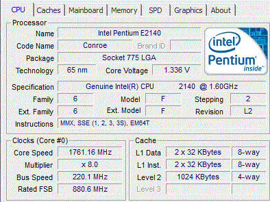 | Процессор (ядро) | Intel Pentium Dual-Core (Conroe-1M) |